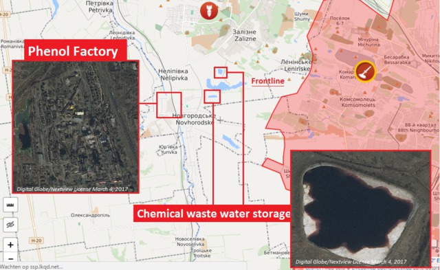 Боевые действия возле предприятий, находящихся у линии разграничения на Донбассе, могут обернуться экологической катастрофой. Как выяснили журналисты «Фразы», об этом заявил глава Донецкой областной государственной администрации Павел Жебривский на Facebook, кроме того, к такому же выводу пришла экспертно-журналистская группа Bellingcat.