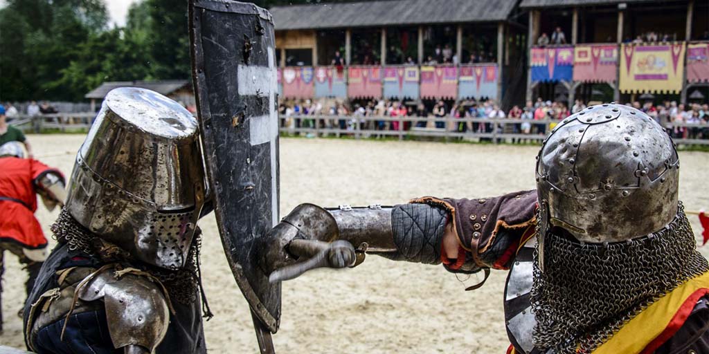 Организаторы сообщают: «Программа начнется в 13:30, а уже с 14:00 на Детинце Киева начнутся зрелищные рыцарские бои — поединки спортсменов в доспехах в рамках турнира по средневекового боя «Витязь Киевского Детинца». Соорганизатором турнира выступает Всеукраинская федерация средневекового боя.