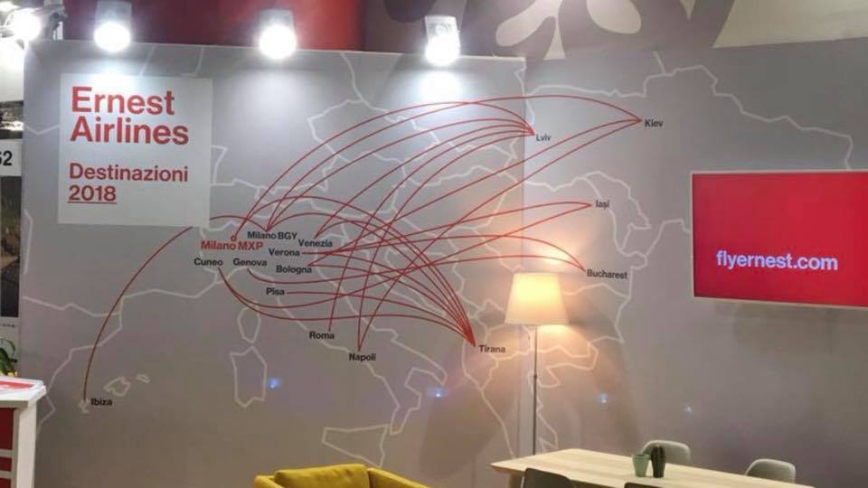 Отметим, что лоукостер Ernest Airlines зашел на украинский рынок осенью 2017 года. 14 ноября итальянский лоукостер Ernest Airlines презентовал новые направления полетов из аэропорта «Киев» («Жуляны»). Первый рейс Ernest Airlines из Киева состоялся 9 декабря в Неаполь.