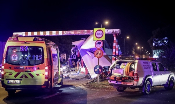 Авария произошла в 18-м районе Будапешта, а автобус ехал в аэропорт «Ферихедь». На большой скорости он не вписался в ограничитель высоты 3,65 метра, из-за чего снесло второй этаж автобуса, где находись люди.