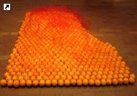 "Наколоті апельсини" – геніальний спіч Людмили Янукович часів української помаранчевої революції. А його втілення у життя можна побачити у далекій Іспанії. Місцевий митець Карлес Сантос створив інсталяцію з "наколотих апельсинів", яка зараз експонується в музеї Хуана Міро в Барселоні" - пишет TabloID. Спич жены Януковича: "Дорогие друзья, я из Киева, я могу сказать, что там происходит. Там просто оранжевый шабаш! Значит, стоят валеночки рядами – все везде американское! От! И горы оранжевых апельсин. И это на фоне: "Оранжевое море, оранжевое небо..". От такое от! Это просто... Это кошмар! И хочу вам сказать, шо эти апельсинки не простые, а наколотые. Люди берут апельсин, съели – взяли другой. От! И она тянется и тянется – рука..." Сейчас я ехала сюда – были новости. И сказали – на площади массовое отруення почалось. Частые случаи обращения в больницу. Людей везут с менингитом! До чего мы дожились! И стоят, и стоят! Глаза просто лубяные! Просто!" фото с сайта TabloID: