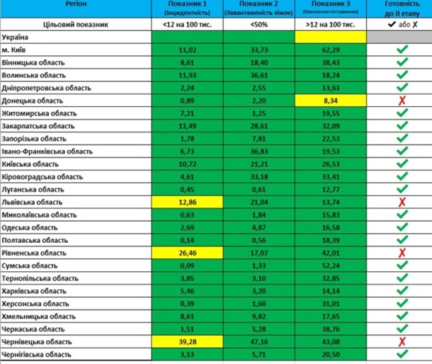 В данный момент не отвечают всем необходимым критериям для ослабления карантина четыре области: Донецкая, Львовская, Ровенская и Черновицкая.
