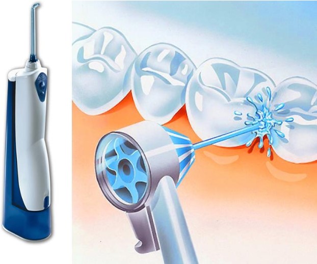 Ирригатор использует для чистки зубов струей воды или лекарством. Он эффективно и бережно очищает зубную эмаль, не травмируя при этом десна. Бывает ирригатор портативный и стационарный. Первые предназначены только для одного человека, вторые — для 2-4 человек.