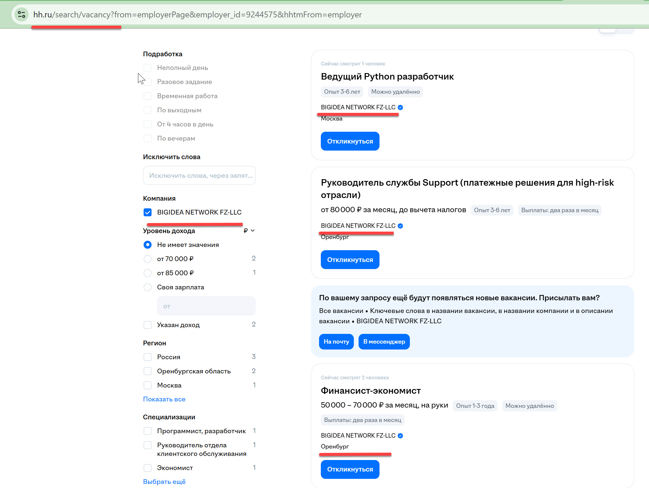 Однако, они также не исключают, что BIGIDEA NETWORK FZ-LLC, в которой работает Юта Романченко и которая зарегистрирована в ОАЭ, на самом деле является компанией с российскими корнями, поскольку активно набирает русскоязычных сотрудников из регионов рф, в том числе связанных с gambling индустрией, о чем свидетельствуют вакансии на соответствующих сайтах.