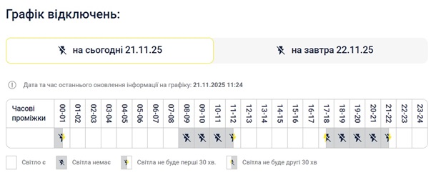 Напомним, в «Укрэнерго» рассказали, какие графики отключений света будут 21 ноября.
