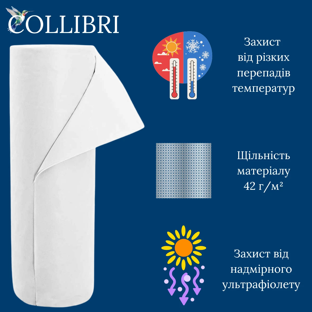 - Применение: защита от ранневесенних возвратных заморозков (до -2°C), насекомых-вредителей и солнечных ожогов.