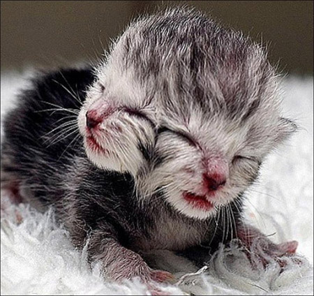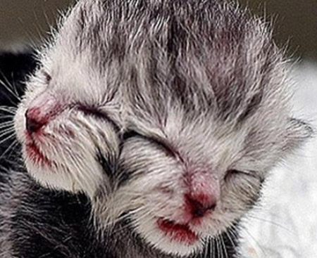Австралийские ветеринары в шоке. Впервые за свою практику им удалось увидеть такое чудо — котенка с двумя мордашками. Причем по всем параметрам чудное животное чувствует себя вполне неплохо, чего не скажешь о специалистах. «Двуличный» котенок появился на свет после кесарева сечения его матери. По словам ветеринаров, кошка перенесла ряд осложнений во время беременности. Медсестра Луиза Бургесс и ветеринар Джордж Хабер, которые принимали роды, заявили, что за их 12-летнюю практику это первый подобный случай, пишет gazeta.ua. «Я видала котов с двумя хвостами и пятью ногами, но такое…, — говорит пораженная Бургесс. — Он нормально ест, и это хороший признак. Знаете, кажется, он даже доволен, по крайней мере, мурлычет». По словам медсестры, владельцы животного не прочь оставить его у себя и сейчас выбирают кличку. Пока варианта два — Мистер Мэн или Квазимодо. Чудо-котенок может есть только одним из ртов, зато мяукает сразу двумя. По мнению ветеринаров, это уродство — результат неправильного развития на раннем эмбриональном уровне. По статистическим данным, двуглавые коты рождаются в одном случае из миллиона.