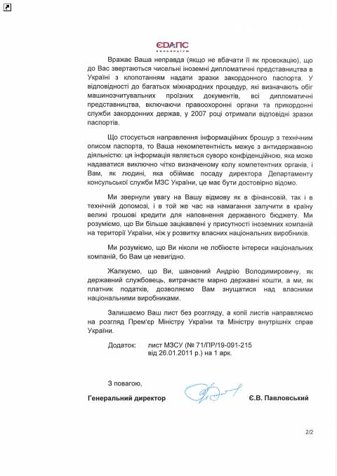 Оказывается, департамент консульской службы МИД «принял к сведению» готовность консорциума ЕДАПС оказать техническую помощь! Скажите, ну не бред: тут предлагают помощь для решения насущной государственной проблемы, а он в ответ – «мы в, который раз, берем во внимание ваше предложение».