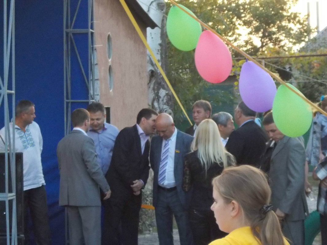На самом деле в этот вечер бросилось в глаза следующее. Приехавшие на праздник чиновники, среди которых были также глава райсовета Запорожского района Иван Гоменюк, глава Вольнянской РГА Владимир Чернелюх, доверенное лицо кандидата Дудки и депутат облсовета от Партии регионов Алексей Чухрай, главы сельсоветов Григорьевки Евгений Проценко и Малокатериновки Семен Карабаджак, ожидая возле сцены своей очереди сказать пару лесных слов в адрес замгубернатора, о чем-то живо переговаривались. Многие обратили внимание на то, как долго и усердно сельский председатель Григорьевки и член оппозиционной партии Реформы и порядок Евгений Проценко что-то докладывал «на ушко» депутату от Партии регионов Алексею Чухраю! (см. фото)