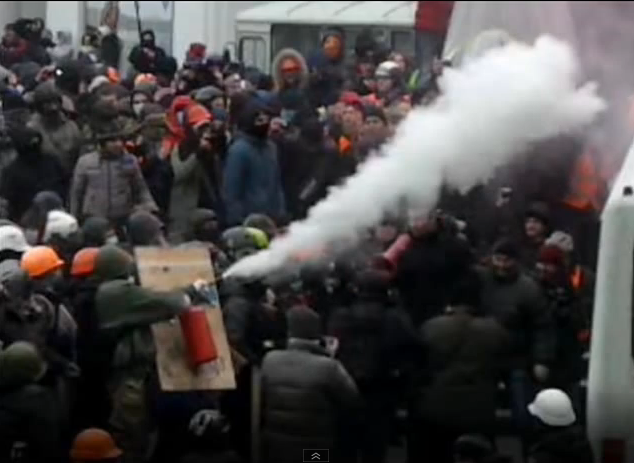 Вспомните, 30 января этого года возле палатки «Правый сектор», на Майдане Независимости, начали сбивать две деревянные рогатки и катапульту для метания камнями и бутылками с «коктейлями Молотова» в сторону сотрудников милиции.