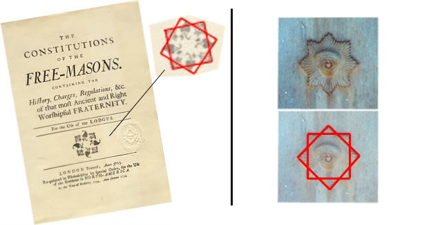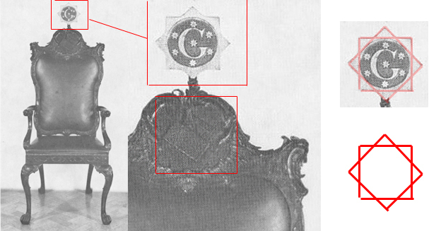 Я нашел несколько наглядных доказательств того, что эта звезда имеет очень тесную связь с масонством. Например, звезда изображена на конституции масонской ложи, так же она присутствует на кресле великого мастера одной из масонских лож и т.д.