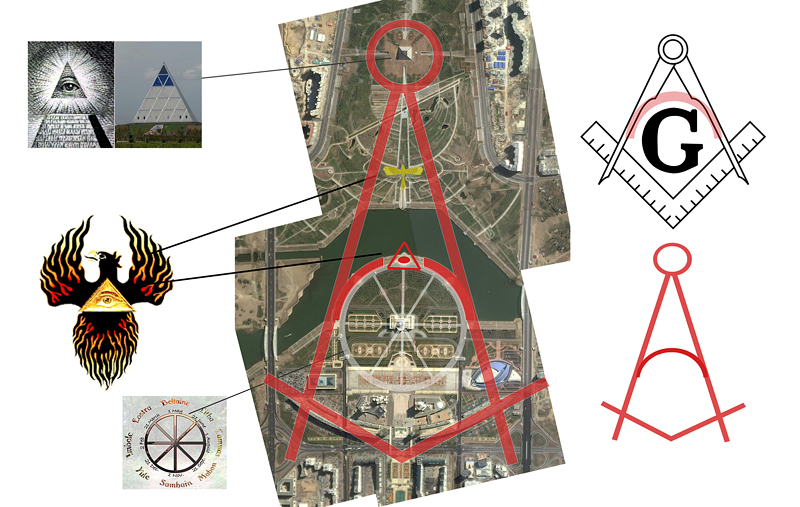 Эта тема уже не раз и не два раза подымалась на просторах интернета, как в приделах нашей страны так и далеко за океаном. «Астана масонская столица 21ого века» с такими заголовками в сети можно найти уйму статей и видеороликов. Тема довольно таки интересна, в статьях говорится якобы Астана (левый берег) строится по всем правилам масонской архитектуры.