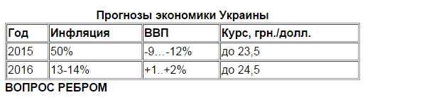 По оценкам Всемирного банка, в следующем году украинская экономика вырастет на 1%. Немного более оптимистичны в МВФ. На следующий год фонд прогнозирует рост ВВП Украины на 2%. Инфляция снизится почти в 4 раза — с 50 до 14,2%. А среднегодовой курс гривны будет составлять 24,1 грн./долл.