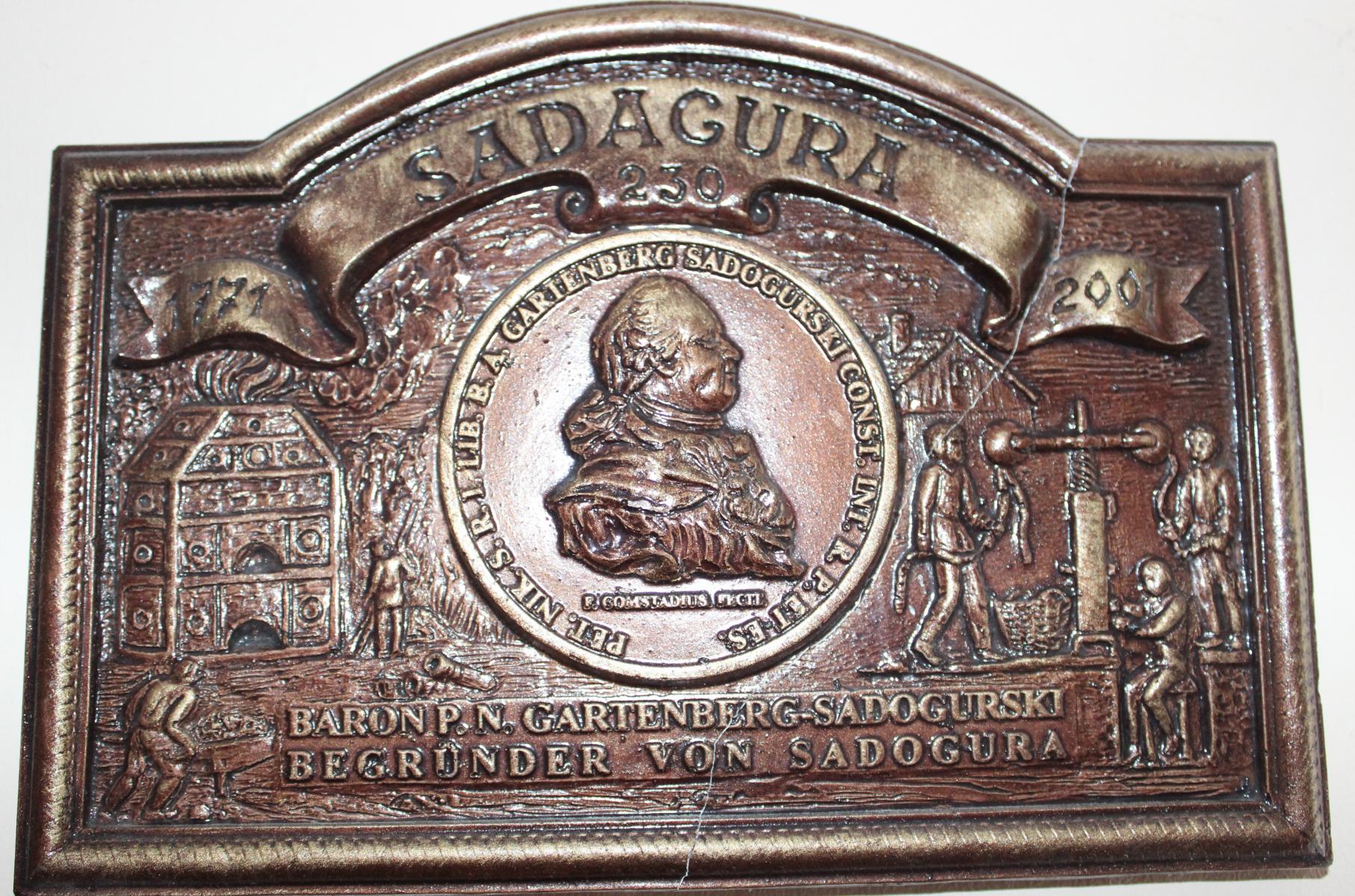Плакетка роботи Сергія Калмикова — на згадку про барона Ґартенберґа (2001)