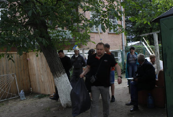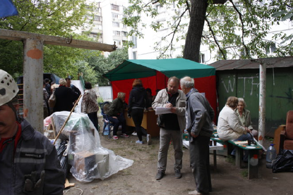 P.P.S. Коли ми вже вимикали відеокамеру і ховали чохли, прямо у дворі зруйнованого будинку люди, що їх досі так і не визнано потерпілими, добивалися правди від голови Голосієвської райдержадміністрації пані Бондар.
