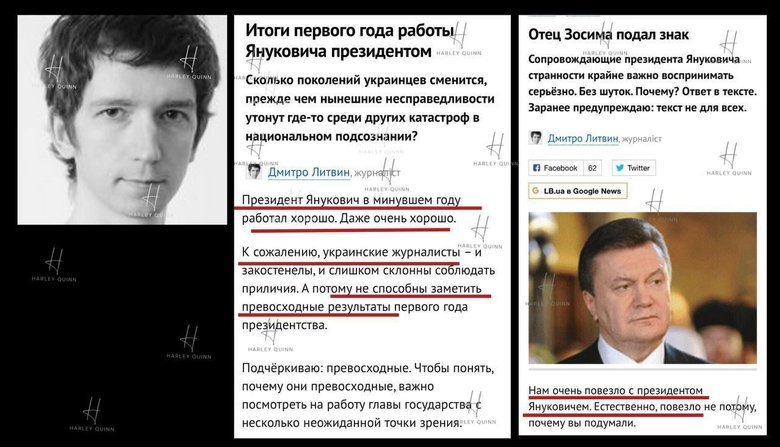 Так, Литвин, зокрема, писав, що результати роботи Януковича "прекрасні", "нам з ним пощастило", а українські журналісти "не здатні це оцінити".