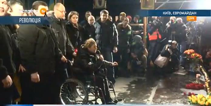 «Мы должны присягнуть их памяти и их семьям, что мы не предадим их. Если бы вы знали, сколько раз я хотела бы быть здесь, сколько раз я хотела держать за руки тех, кто боролся и не сдавался. Вы — лучшие в мире. Я вас люблю так, что вы даже не можете себе представить. Слава Украине!» — сказала Тимошенко.